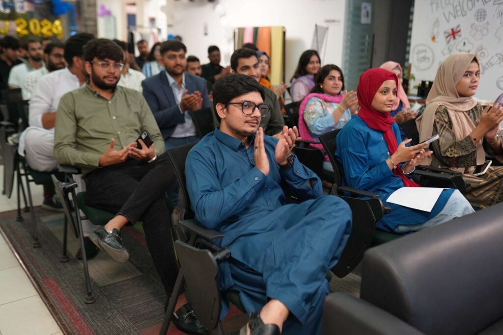 The event kicked off with Day 1 featuring engaging guest speaker sessions. Renowned entrepreneurs Mr. Waqas Ahmed Dar, Co-Founder of Trax, and Mr. Faizan Laghari, CEO of Startup Syndicate, shared their entrepreneurial journeys and provided valuable insights into the world of startups, resilience, and leadership.