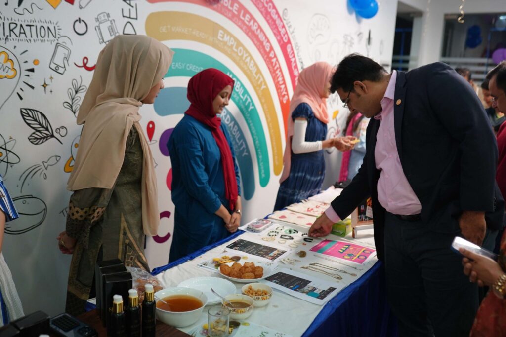 The week concluded with an energetic Ideas Pitch Deck and Kiosk Display on Day 3, where students set up creative kiosks showcasing innovative business ideas, handmade crafts, and startup concepts. Industry experts Mr. Kapeel Kumar and Dr. Gulfam Baghoor graced the event as guest jurors, providing constructive feedback while encouraging students to think bigger and refine their ideas.