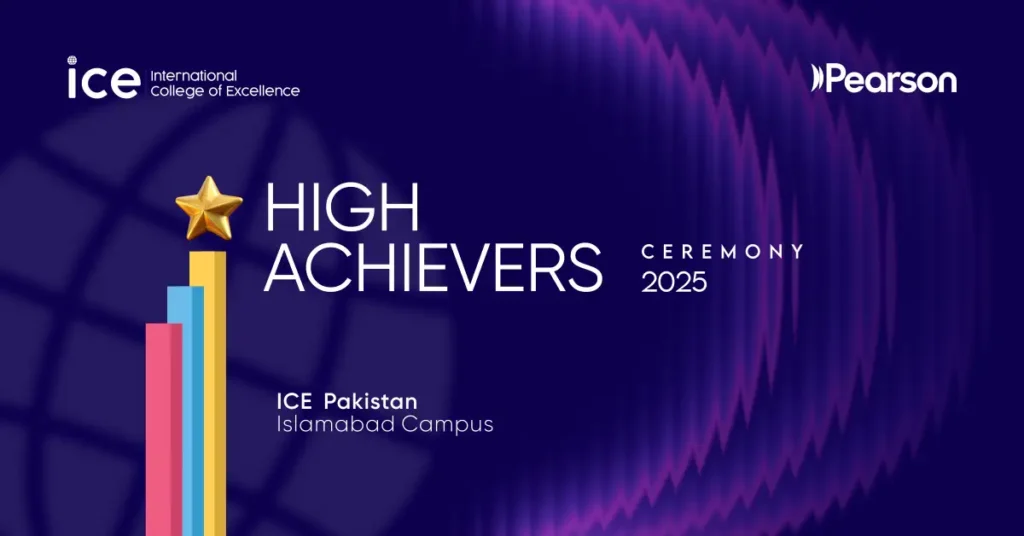 The International College of Excellence (ICE), Islamabad, was honoured to host Ms Jane Baker, Vice President of Business Development at Pearson, as the Chief Guest at the High Achievers Ceremony 2025. The event was a celebration of academic excellence, creativity, and dedication, recognising students who have excelled in their respective fields.